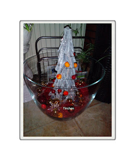 im Glas. Hab das große Glas mit Sisal gefüllt,ein paar Kugeln rein,den Baum aus Ästen gewerkelt und mit weißer Farbe getüncht,ein paar Äpfelchen angehänt,mit Lichterkette dekoriert und dann ins Glas gestellt. Leider kommt die Wirkung auf fem Foto nicht so schön rüber.